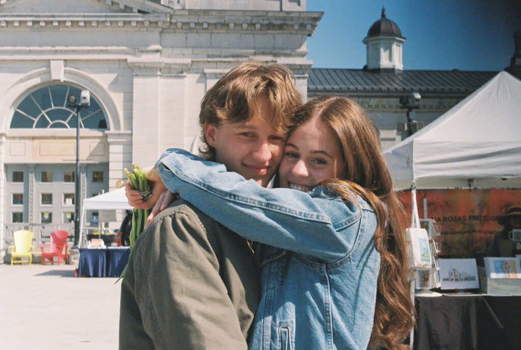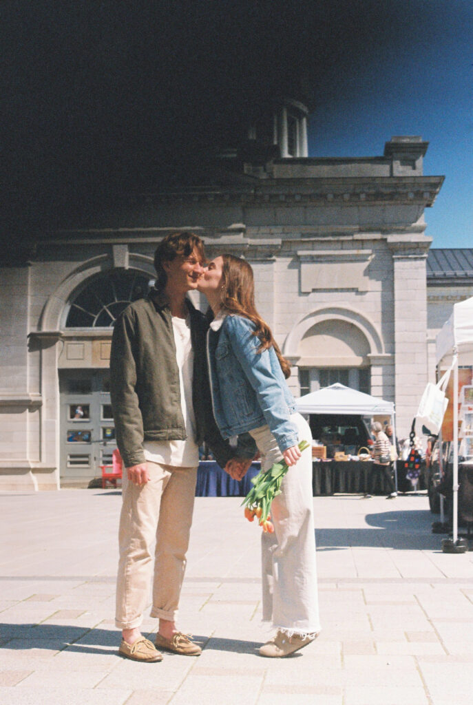 Couple shops for tulips in Kingston, ON Springer Market Square.